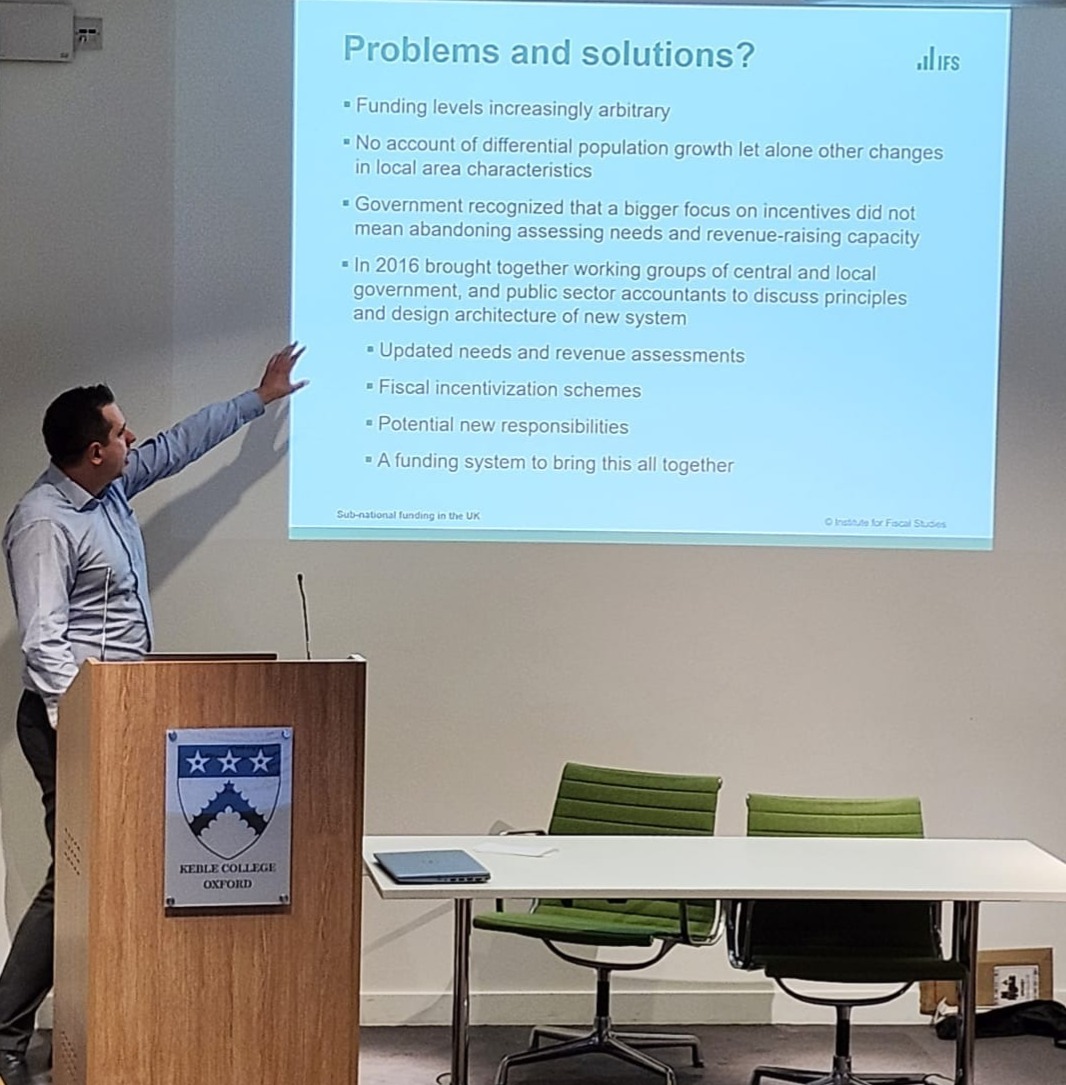 As part of the programme, TaxDev’s David Phillips delivered a presentation on the UK’s systems of subnational funding allocation and revenue-raising powers and lessons for emerging economies. David provided an overview of the UK’s asymmetric system of devolution, the role of the Barnett formula in funding the devolved administrations, and the evolution of local government finance in England. Drawing on the UK’s experience with devolution and recent reforms to local government finance, David highlighted the importance of clear principles underpinning fiscal equalisation systems, the inherently subjective nature of sub-national funding systems and the need for reforms to acknowledge this, and the difficulty of reforming funding arrangements once they become embedded – meaning opportunities for beneficial reform must be grasped.